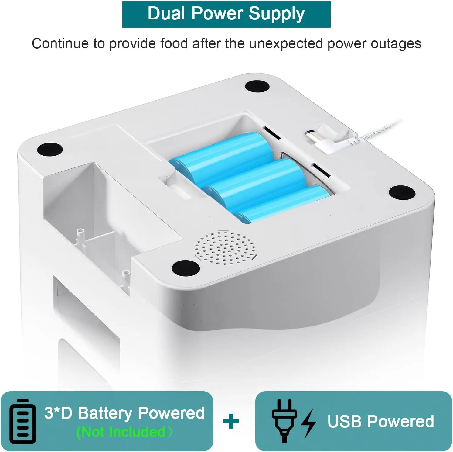 - ★Dual Power Supply: This automatic pet feeder can be powered through the included power adapter or 3*D batteries (not included), ensuring your pets are fed even during power outages. We recommend using both to avoid any interruptions in feeding.